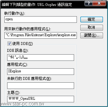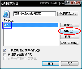 3.在[編輯檔案類型]的視窗中,選擇[open],然後按下[編輯]鈕。